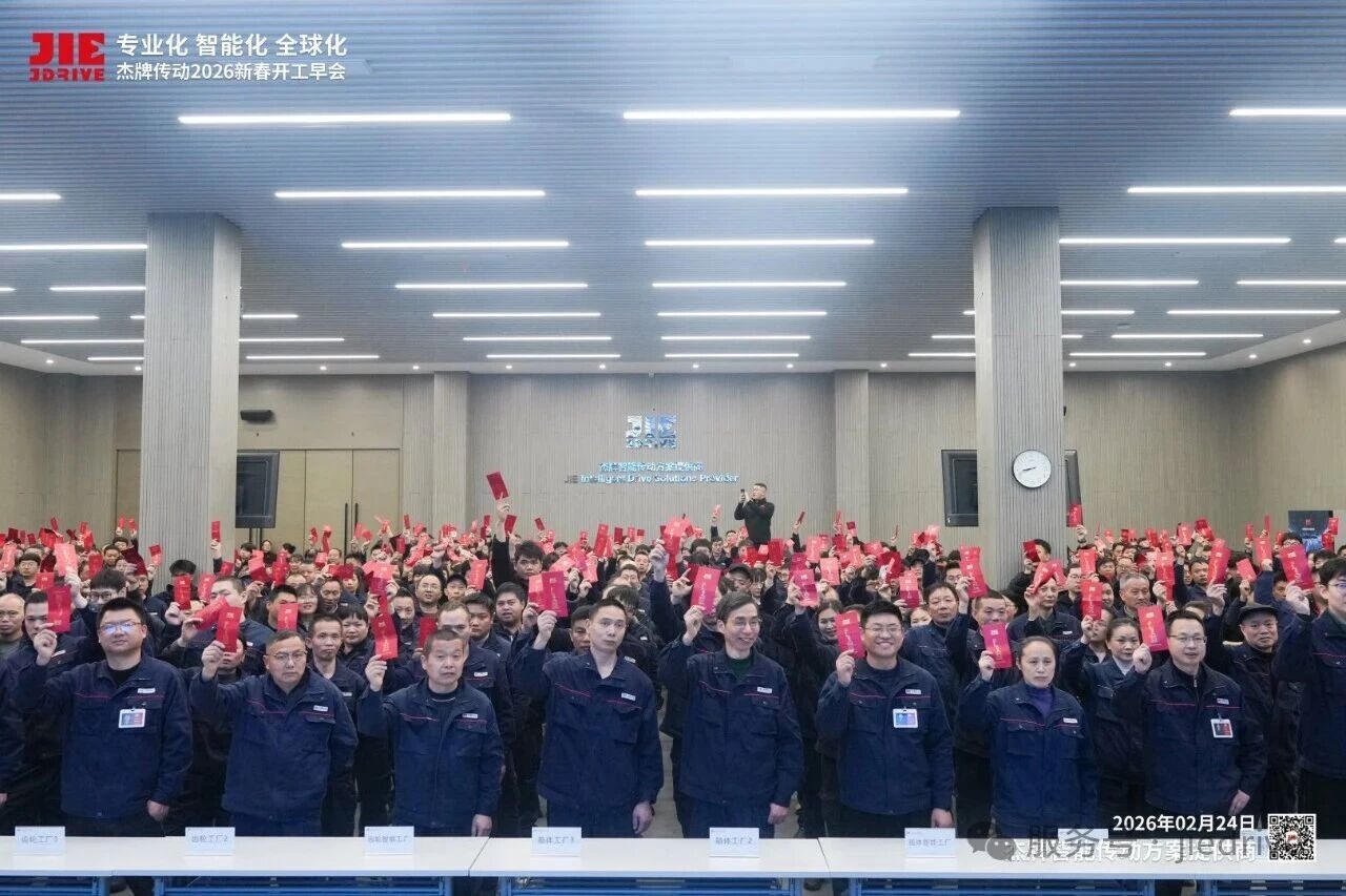 2026年2月24日,以專業(yè)化、智能化、全球化為航向,杰牌傳動2026新春開工早會于C座培訓(xùn)中心圓滿舉行。開工紅包暖心派送、服務(wù)承諾鄭重簽署、全員績效全面宣貫、513N計劃精準(zhǔn)部署、年度工作統(tǒng)籌布局,全體杰牌人斗志昂揚、信心滿懷,共啟新歲新征程。