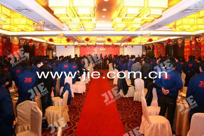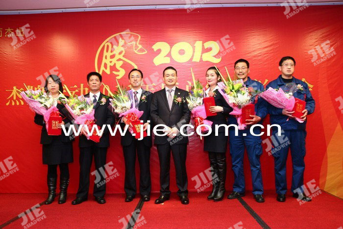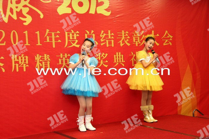 2012年01月18日,杰牌傳動(dòng)2011年度總結(jié)表彰大會(huì)暨杰牌精英頒獎(jiǎng)典禮在蕭山航民賓館隆重舉行,大會(huì)通過“工作報(bào)告、頒獎(jiǎng)典禮、簽約儀式、答謝午宴”等系列活動(dòng)總結(jié)了2011年工作,明確了2012年目標(biāo),鼓舞了全體員工的信心和士氣,為2012年目標(biāo)任務(wù)的完成奠定了扎實(shí)的基礎(chǔ),總結(jié)表彰大會(huì)后全體員工參加了答謝午宴,午宴在《杰牌之歌》的歌聲中推向高潮。